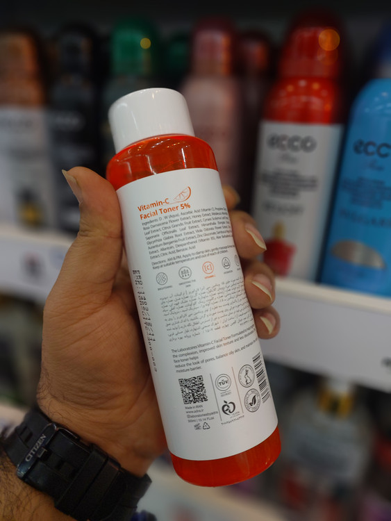 - تونر ویتامین سی آدرا، کمک به روشن شدن رنگ چهره و کاهش تیرگیهای سطحی