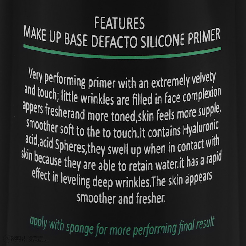 پرایمر دیفکتو پوست را برای آرایش آماده میکند و به جذب بهتر محصولات آرایشی کمک میکند و یک سطح یکنواخت و صاف را برای آرایش ایجاد میکند. همچنین این پرایمر به افزایش ماندگاری آرایش کمک میکند.
