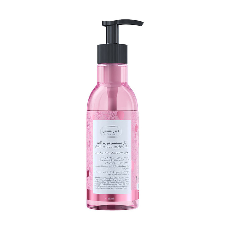 سایر توضیحات : ترکیبات موثر : آب، گلاب، عصاره رز فرانسوی، روغن گل محمدی، سدیم PCA، PEG-40 روغن کرچک هیدروژنه، دسیل گلوکوزید، ساخارید ایزومتریک، متیل کلرو ایزوتیازولینون، متیل ایزو تیازولینون، EDTA، روغن آملا، رنگ