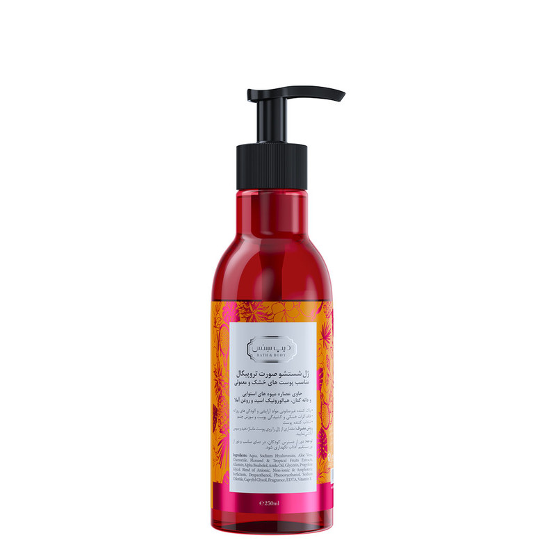 ژل شستشو صورت دیپ سنس مدل میوه های استوایی مناسب پوست معمولی و خشک حجم 250 میلی لیتر