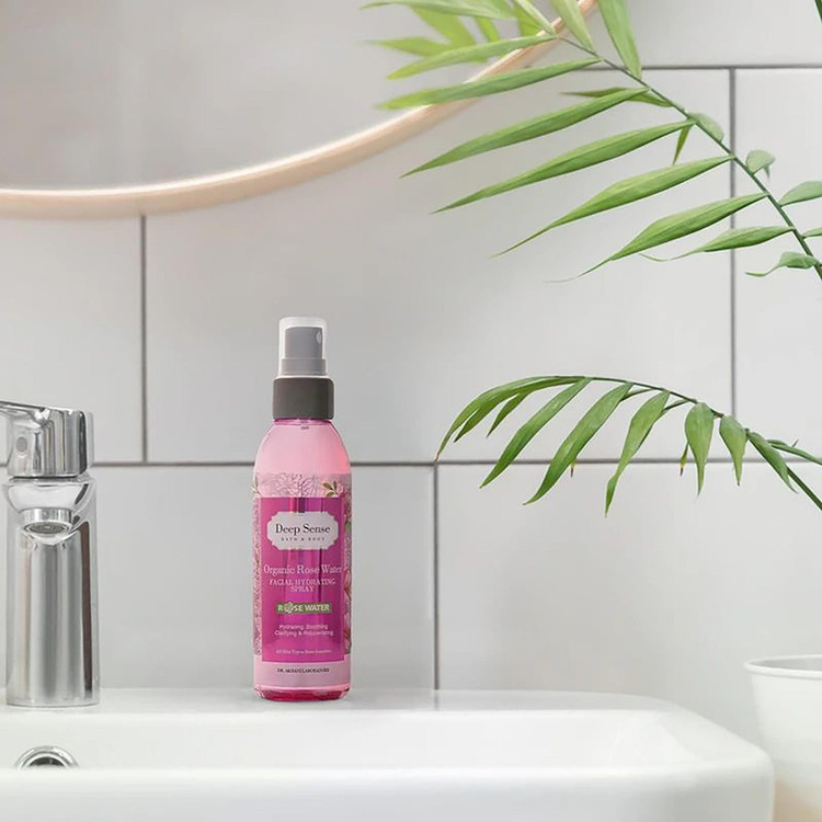 خواص گلاب برای پوست بسیار زیاد است تا آنجایی که امروزه در تولید محصولات مراقبتی پوست از آن استفاده میکنند. در کنار خاصیتهای بی نظیر گلاب، رایحه و عطر آن خستگی را از تن هر کسی بیرون کرده و باعث افراد میشود. در تولید اسپری مرطوب کننده صورت رز دیپ سنس از گلاب ارگانیک، عصاره بابونه و آویشن استفاده شده است که با خواص آنتی اکسیدانی موجب روشنی پوست میشود، همچنین پف پوست را کاهش میدهد.
