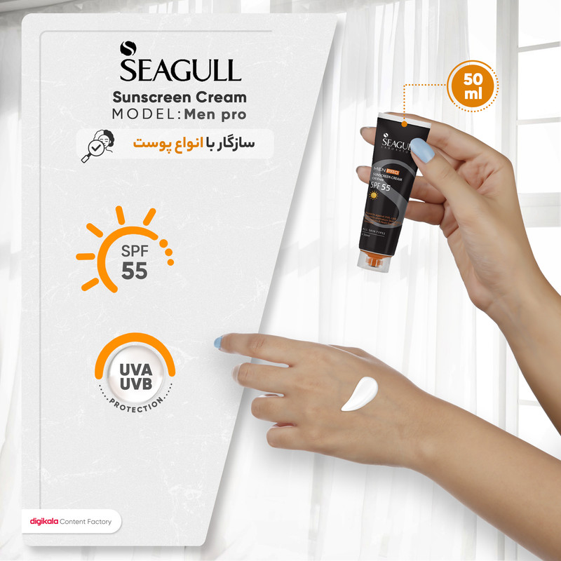 اگر میخواهید که اشعههای آفتاب بر روی پوست شما اثر مخرب نداشته باشند، فرقی ندارد که زن باشی یا مرد، استفاده از ضد آفتاب را جدی بگیرید. ضد آفتاب میتواند پوست شما را در برابر اثرات منفی که اشعههای مضر خورشید بر روی آن میگذارد، محافظت کرده و از بوجود آمدن چینها بر روی پوست جلوگیری کند. برند سی گل سری ضد آفتابهای خود را تحت نام Sun Pro ، برای حالتهای مختلف عرضه کرده که هر کدام از آنها با دارا بودن خواصی، میتوانند از پوست مراقبت کرده و حتی آنرا تقویت و یا ترمیم کنند. یکی از این محصولات، کرم ضد آفتاب مخصوص آقایان با SPF55 است. این تیوپ 50 میلی لیتری حاوی ترکیباتی از فیلترهای فیزیکی و شیمیایی، آلوئه ورا و ویتامین E است. این کرم حفاظت از پوست را در برابر تمام طول موجهای ماورا بنفش A وB و مادون قرمز در زمانی طولانیتر فراهم میآورد. تسهیل اکسیژن رسانی و رطوبت رسانی قوی در کنار غیر جوشزا بودن و فاقد چربی بودن این ضد آفتاب باعث شده تا برای استفادهی آقایان و البته خانمها نیز قابل استفاده باشد. از خواص دیگر این ضد آفتاب غیر مرئی (Invisible) بودن آن است. استفاده از ضد آفتاب میتواند ضمن ابجاد سد محافظتی قوی در برابر آفتاب، به عناون پایهی آرایش هم در نظر گرفته شود. یادتان باشد. هر روز باید از این محصول استفاده کرده و حداقل 30 دقیقه قبل از خروج از منزل و قرار گیری در معرض آفتاب آن را بر روی پوست خود بمالید. همین طور در صورت تعریق زیاد، آن را تجدبد کنید. با خرید این محصول بهترین مراقبت را از پوستتان به عمل آورید.