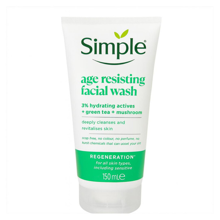 ژل شستشوی صورت سیمپل مدل Age Resisting Facial Wash یک شویندهی بسیار ملایم، فاقد صابون و مناسب برای انواع پوست بهویژه پوستهای حساس، خشک و مستعد حساسیت است که با فرمولاسیون پیشرفتهی حاوی 3% ترکیبات آبرسان فعال، عصاره چای سبز و عصاره قارچ طراحی شده تا علاوه بر پاکسازی عمقی، به شادابی و جوانی پوست کمک کند. این محصول با حذف کامل آلودگیها، چربی اضافی، باقیمانده کرمها و مواد آرایشی، بدون ایجاد خشکی یا کشیدگی، پوستی نرم، صاف و شفاف بر جای میگذارد و در عین حال به بازسازی و احیای بافت پوست کمک میکند. وجود ترکیبات آنتیاکسیدانی قدرتمند در چای سبز ضمن جلوگیری از پیری زودرس پوست، به کاهش التهاب، قرمزی و بهبود ظاهر کلی پوست کمک میکند و عصاره قارچ نیز با خواص تقویتکننده و ترمیمکننده، به افزایش انعطافپذیری و شادابی پوست کمک مینماید. این ژل شستشو فاقد هرگونه مواد مضر مانند الکل، پارابن، عطر، رنگ، SLS و مواد شیمیایی تحریککننده است و به همین دلیل حتی برای پوستهای بسیار حساس نیز کاملاً ایمن و قابل استفاده است. فرمول SOAP-FREE این محصول باعث میشود بعد از شستشو حس خشکی یا کشیدگی روی صورت باقی نماند و PH پوست بهطور کامل حفظ گردد. ژل شستشوی Age Resisting سیمپل با خاصیت ضدپیری و احیاکننده خود به مرور زمان باعث روشنتر شدن پوست، بهبود بافت، کاهش کدری و افزایش طراوت صورت میشود و به دلیل داشتن ترکیبات آبرسان و تسکیندهنده برای استفاده روزانه در صبح و شب ایدهآل است. این شوینده بافتی ژلی، سبک و قابل شستشو دارد و بعد از استفاده حس سبکی و تمیزی خوشایندی روی پوست باقی میگذارد. محصول مورد نظر با حجم 150 میلیلیتر عرضه شده و برای افرادی که به دنبال یک شوینده کاملاً ملایم، مؤثر و بدون افزودنیهای حساسیتزا هستند گزینهای بسیار مناسب به شمار میآید و میتواند روتین مراقبت از پوست را تکمیل کرده و به جوانسازی و شادابی پوست کمک کند.