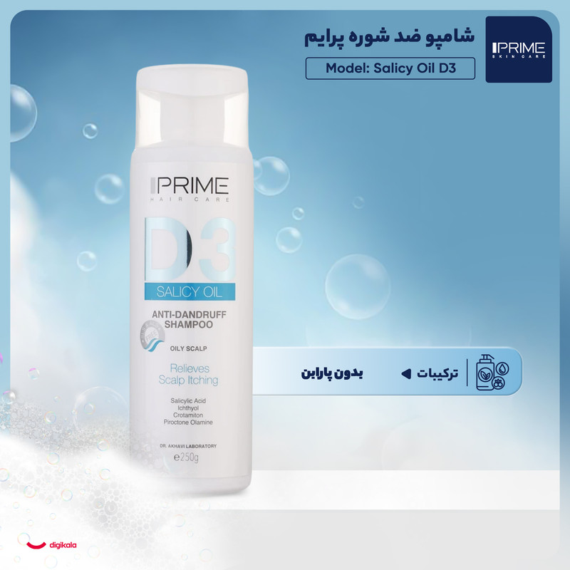 شامپو ضد شوره پرایم مدل Salicy Oil D3 مناسب موهای چرب حجم 250 میلیلیتر
